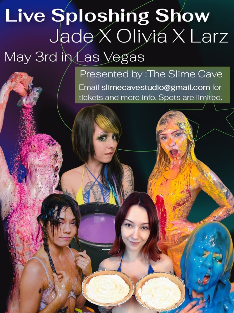Come check our live epic 3 girl sploshing performance starring JustJade, Olivia, and myself (Larz)! It's gonna be super messy and super hot! You won't wanna miss it!